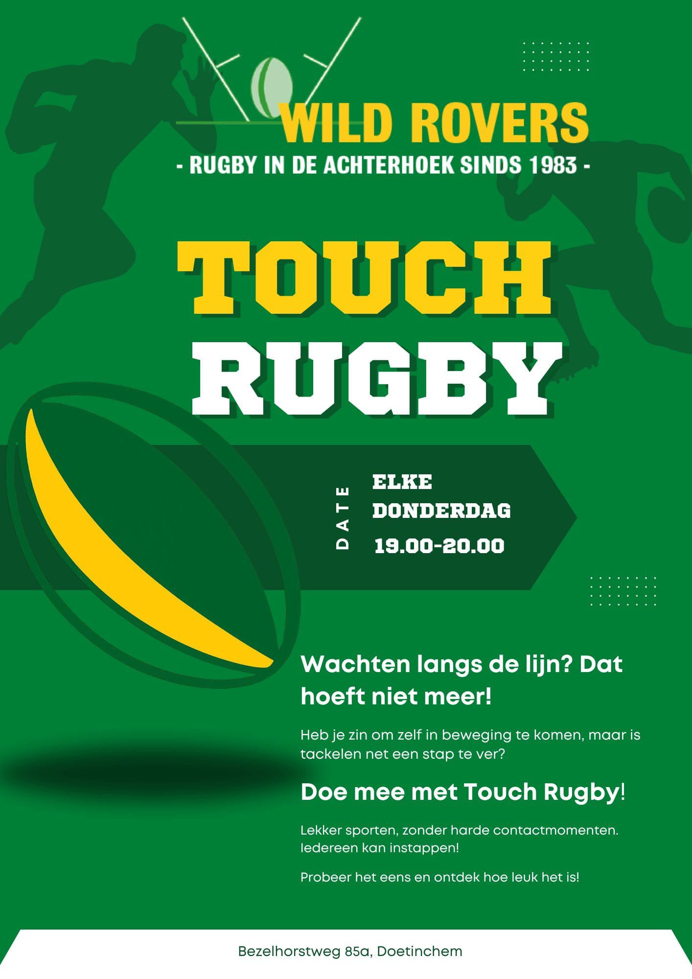 Sta je als ouder toch al langs de lijn tijdens de TBM‑training of wil je een teamsport doen maar vind je tackelen nét iets te spannend? Geen probleem. Dan doe je toch gewoon mee met touch rugby.